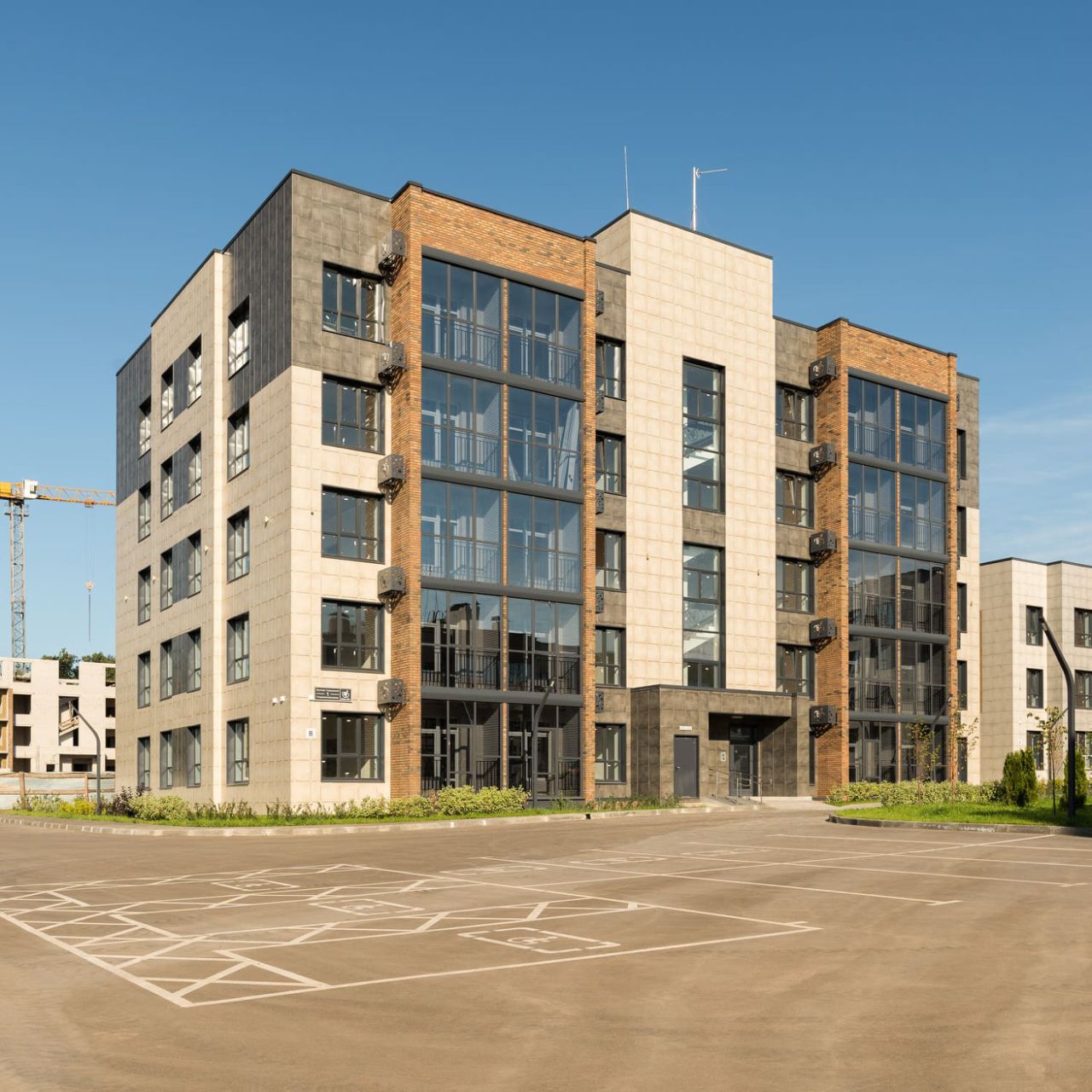Дома малой и средней этажности, квартиры сдаются в предчистовой отделке. Дома первой очереди сданы, строится вторая очередь.